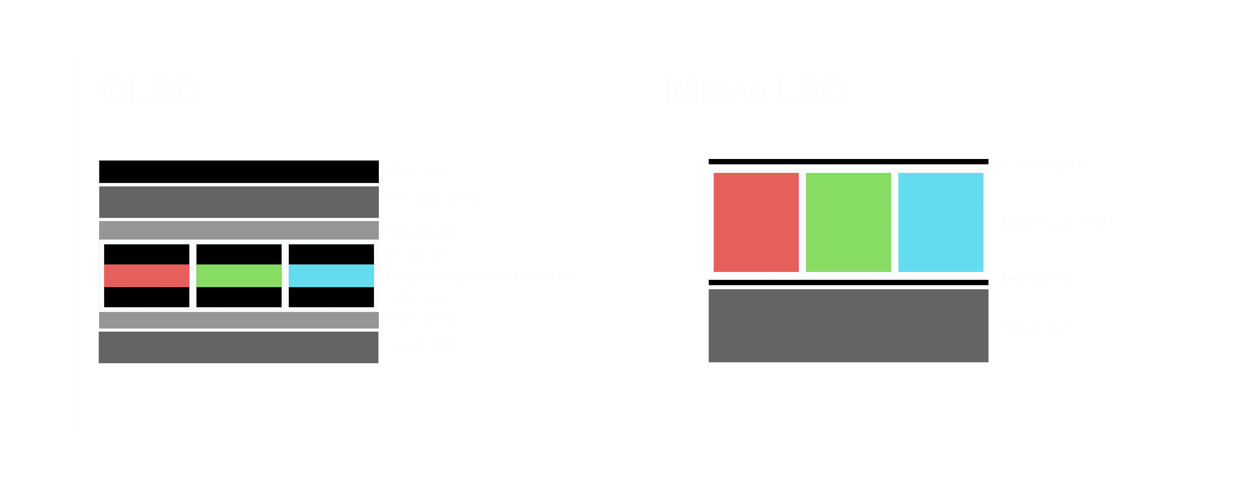 以 LED 做为显示画素,,可让 LED 的发光效率发挥到极致,,,,从而让显示器具备优异的亮度表现,,,,不论是在户外或室内,,均具备出众的显示效果。。。。同时,,,与使用有机材料的 OLED 相比,,,LED 具备更稳定、、、、寿命更长的特性,,,,不仅不会有画面烙印问题,,而且更不容易出现故障、、、、坏点。。。。